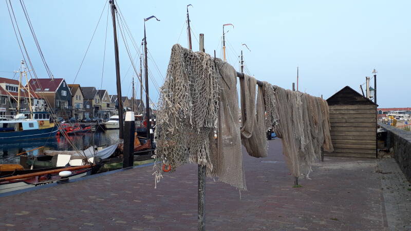 Dag 14 t/m 16: We blijven in de buurt en rijden naar de camperplaats parking Haven Urk. Voor € 16,30 is dit ook altijd weer een leuk en gezellig plekje om een nachtje te staan. Urk was een eiland in het IJsselmeer tot het in 1939 door een dijk werd verbonden met Lemmer en in 1942 de Noordoostpolder werd drooggemalen. Voor de inwoners van Urk leeft het eilandgevoel nog steeds. Het is een hechte gemeenschap met een eigen dialect en ze wonen niet in Urk, maar op Urk. Het is de meest kerkelijke gemeente van Nederland en ze hebben de grootste vissersvloot en visverwerkende industrie. Het vissersmonument stelt een vrouw voor die nog één keer achterom kijkt naar de zee waar haar geliefde vandaan had moeten komen. Op de marmeren platen staan namen van hen die op zee het leven verloren. En er komen nog steeds namen bij.