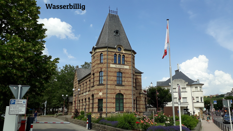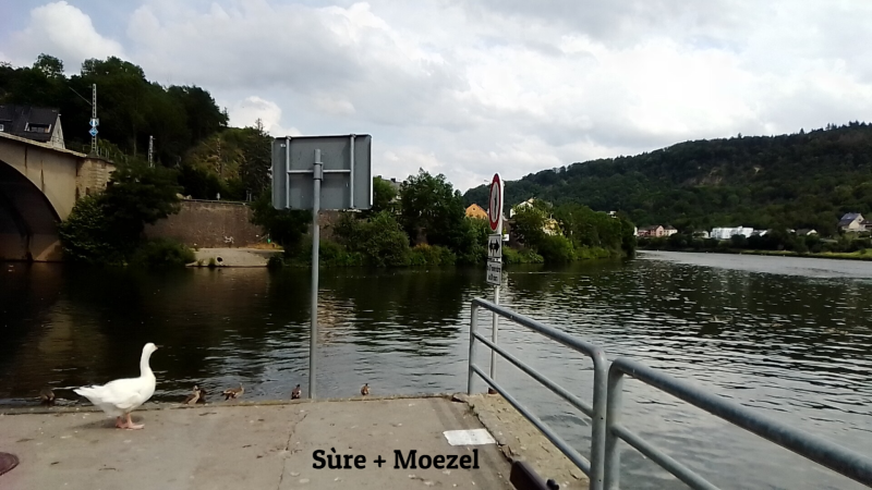 Ondanks de weg hebben we weinig last gehad van herrie en prima geslapen. Vandaag gaan we meer richting het noordoosten vlak bij de Duitse grens. Het is meer dan 30º als we aan het eind van de ochtend aankomen bij camperplaats Luxoil. Het is even zoeken hoe we er moeten komen maar als we het hebben gevonden blijkt het een prima gratis plek achter een pompstation met zicht op wijnvelden. Het ligt halverwege Mertert en Wasserbillig, vlak bij de Moezel die de grens vormt tussen Luxemburg en Duitsland. We lopen vanmiddag naar Wasserbillg waar de Sûre en de Moezel samen komen en daarna doorgaat als de Moezel. Er is een veerpont die heen weer vaart tussen Wasserbillig en het Duitse Oberbillig.