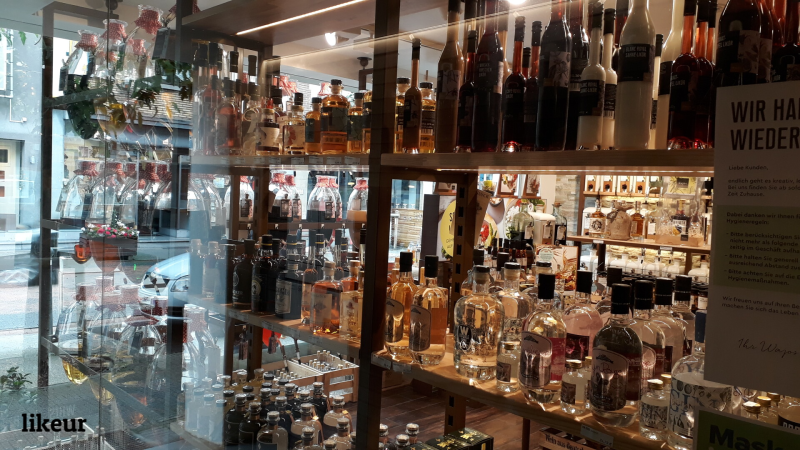 Als het droog is lopen we de stad even in en komen langs een leuke aparte drank-likeur winkel. Hier staan en hangen grote glazen vaten met de meest uiteenlopende likeuren en dranken die je zelf mag tappen.