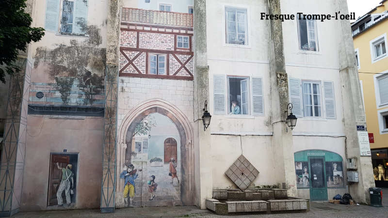 De stad ligt aan de voet van het Juragebergte en het centrum is ongeveer 20 minuten lopen. Er staan veel mooie oude panden met houten gevels uit de 15de en 16de eeuw waaronder de Fresque Trompe-l'oeil, een pand wat schitterend beschilderd is.