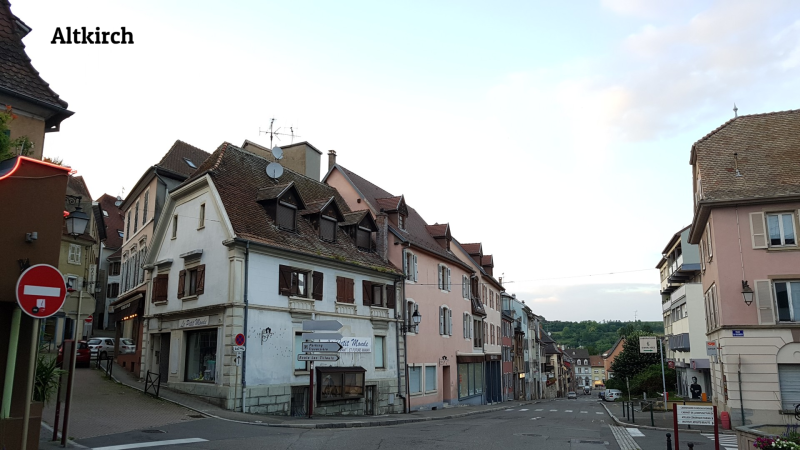 Dag 17: Na een mooi route van 6 uur komen we via Besançon en Belfort aan in Altkirch. Het was een goede weg en onderweg hebben we tot 3 maal toe hetzelfde rare autootje ingehaald wat maximaal 60 km kon rijden. Raar maar wel waar. We staan op de kleine leuke camping Les Acacias op 5 minuten lopen van het centrum. Altkirch ligt in het zuiden van de Elzas vlak bij Zwitserland en Duitsland. De stad werd in de 12de eeuw gesticht en heeft mooie historische gebouwen. De restanten van de wallen en de torens zijn nog zichtbaar.