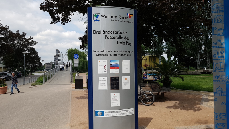 Dag 18: Vandaag rijden we eerst naar het duitse Weil am Rhein. Hier ligt de Drielandenbrug met aan de ene oever Duitsland en aan de andere oever Frankrijk met 200 meter verderop de grens met Zwitserland. Met 346 meter is het de langste boogbrug ter wereld voor voetgangers en fietsers met maar 1 boog. Daarna rijden we door naar Terrassencampingplatz in Herbolzheim waar we een mooie ruime plek hebben. Herbolzheim is een stad in de deelstaat Baden-Württemberg en het leuke kleine centrum ligt op ongeveer 1 km van de camping.