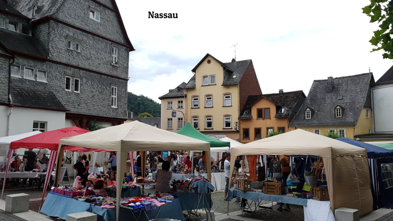 Dag 21: We rijden binnendoor verder via Mainz richting Koblenz. Onderweg staan we een tijdje stil omdat er een wielerronde is. We stoppen in Nassau en zetten de camper op de parking Am Bahnhof, een prima gratis plek aan de rivier de Lahn. Aan de andere kant van het spoor ligt het centrum van de stad met winkeltjes en voldoende restaurants. Er is ook een leuke markt op het plein.