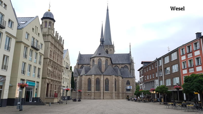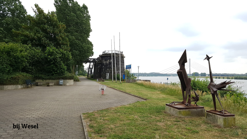 Vanmorgen worden we al vroeg wakker omdat ze vlak achter de camper gras aan het maaien zijn. Nadat we nog een keer getankt hebben gaan we via de snelweg door tot aan Oberhausen waarna we verder binnendoor rijden naar Wesel. Camperplek Römerwardt ligt aan de Rijn en via de promenade is het ongeveer 20 minuten lopen naar het centrum van deze historische vestingstad. Langs de oever staan nog de overblijfselen van de langste spoorbrug over de Rijn. De brug was 1950 meter lang en zorgde voor de verbinding tussen Noord-Duitsland en West-Europa. De twee spoorlijnen die over deze brug liepen, begonnen in Boxtel en Venlo en eindigden in Hamburg.