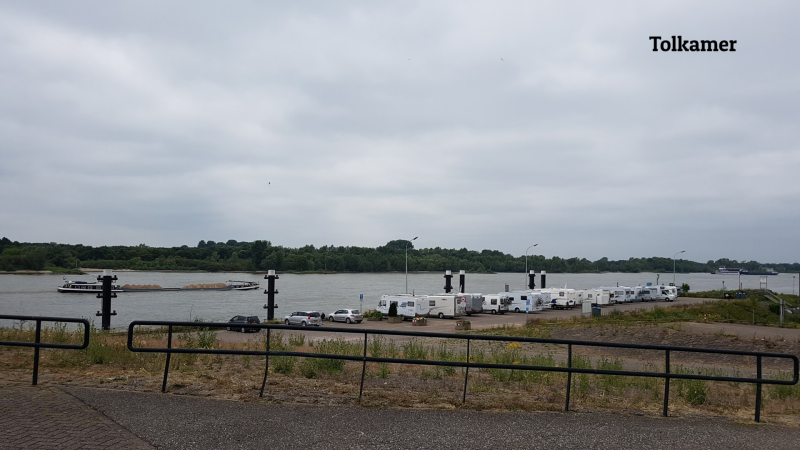 We blijven nog even langs de Rijn en rijden via Emmerich naar Tolkamer waar er nog net één plekje vrij is op de Europakade. Altijd een mooie plek direct aan het water vlak bij het kleine centrum. Zittend voor de camper genieten we op onze laatste plek van een drankje en van de boten die voorbij komen varen. De musjes houden ons gezelschap en eten de restjes van een boterham op.