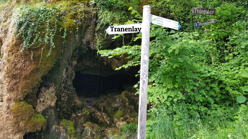 Hier zien we de bijzondere Tränenly waterval en lopen we het bos in. Via een flinke helling en langs mooie kalkstenen rotsformaties gaan we 600 meter omhoog om uit te komen bij de Predigtstuhl. Dit is de hoogste rots in dit gebied die zijn naam dankt aan zijn uiterlijk. Het is een zware wandeling maar zeker de moeite waard.