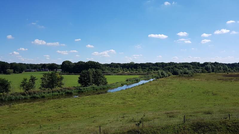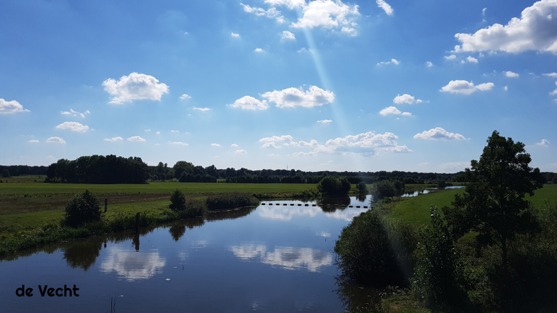 Het is nog steeds heerlijk weer dus we blijven nog een nachtje in Diffelen. We stappen op de fiets en het eerste wat we tegenkomen is de uitkijkheuvel, de Distelbelt. De top is bereikbaar via een trap en boven hebben we een prachtig uitzicht over de rivier de Vecht. De rivier heeft een lengte van 167 kilometer, vanaf de bron bij het Duitse Darfeld tot aan het Zwarte Water in Zwolle. De Vecht wordt ook wel de kleinste grote rivier van Nederland genoemd en is tegenwoordig meestal kalm, maar tijdens de hoogtijdagen voeren hier iedere dag tientallen schepen af en aan.