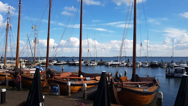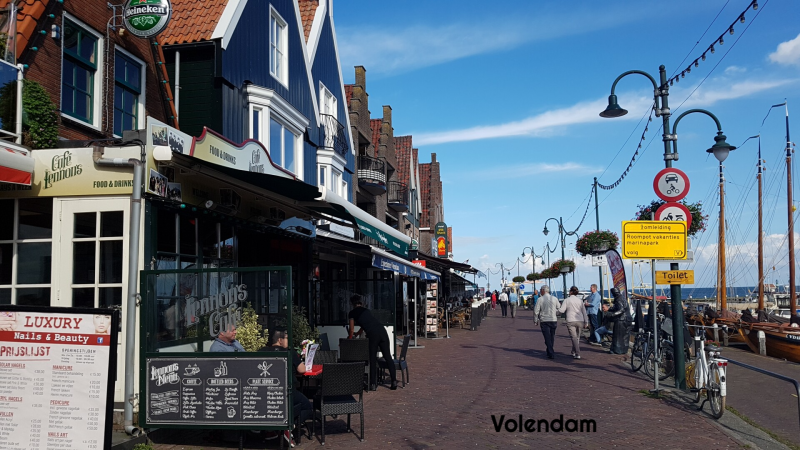 Het is ongeveer een kwartier lopen naar het toeristische centrum waar je in klederdracht op de foto kunt en genoeg souvenirs kunt vinden in de vele winkeltjes aan de haven. Het is schitterend weer en toch hebben we het er nog nooit zo rustig gezien als nu.