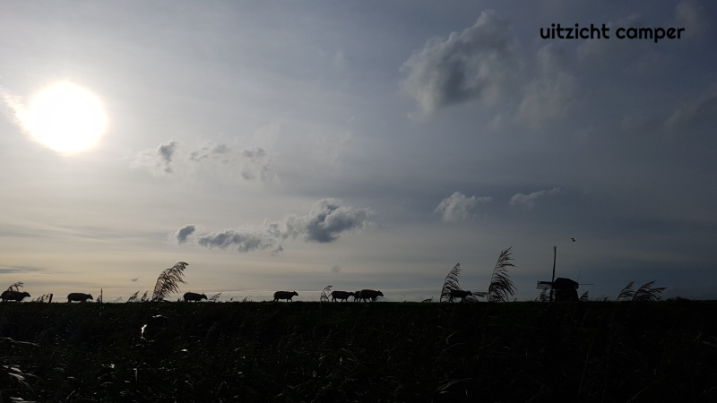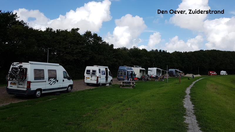 Dag 13: We verlaten Friesland en rijden over de afsluitdijk naar Den Oever. Eerst gaan we kijken bij de parking aan de Oostkade. Ondanks het vroege tijdstip staat het hier helemaal vol. Een stukje verderop is op parking Zuiderstrand ook een gratis camperplek en passen we nog precies tussen twee andere campers. De campers staan hier achter elkaar en hebben dus allemaal mooi zicht op de Zuiderhaven aan de IJsselmeerkant van de afsluitdijk. Er is een leuk strandje en een dubbele fietstunnel onder de snelweg door met de woorden 'zout', richting Waddenzee en 'zoet' richting IJsselmeer. Lopend van zoet naar zout komen we in het centrum van het dorp en bij de haven. Den Oever is vooral bekend om de garnalenvisserij.