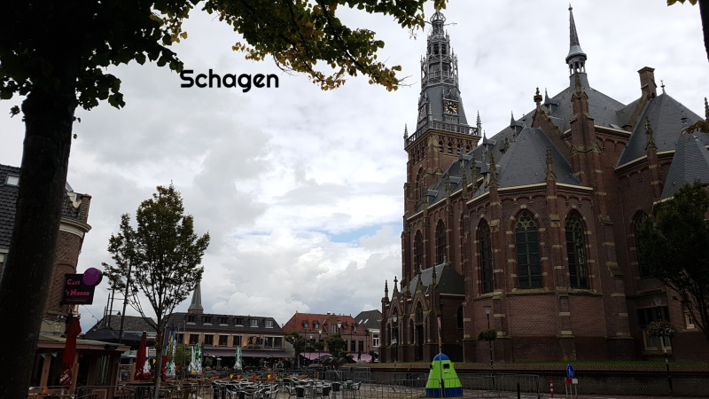 Dag 14 en 15: Als onze volgende bestemming hebben we Den Helder in gedachten. De camperplek en het parkeerterrein staan al bomvol. Dit hadden we niet verwacht dus rijden we door naar Julianadorp. We komen bij een leuke camping maar hier is aankomst op zondag niet mogelijk. Tijdens het eten van een broodje besluiten we om door te rijden naar Schagen waar gelukkig nog net één plekje vrij is bij de recreatiehaven. Ondanks dat het weer tegenvalt lopen we toch naar het centrum van deze marktstad. Aan de historische markt staat de Grote Kerk die je bijna vanuit elke hoek van de stad kunt zien.