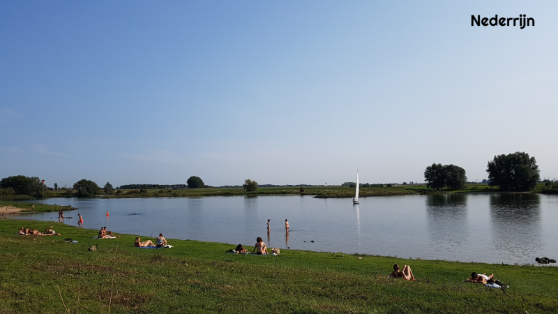 Na een wandeling door de leuke stad pakken we de fiets. Vanaf de haven gaan we via een smal klinkerpad naar de rivier waar op de oevers over een flinke lengte recreatiestrandjes zijn. We nemen een kijkje bij het water waarna we doorfietsen langs de Rijn. Onderweg komen we nog langs de voormalige steenfabriek de Bovenste Polder en na een mooie rit kunnen we nog lekker buiten zitten. Terwijl we zitten te eten komen er steeds meer jongeren langs lopen en fietsen, met kratten bier en pizzadozen, op weg naar de strandjes.