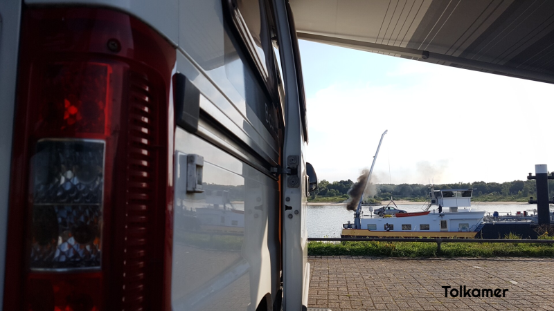 Ondanks dat de camperplek grenst aan een betonfabriek hebben we vannacht rustig geslapen. In Arnhem rijden we even langs een plek waar we het toilet kunnen lozen en pakken onderweg ook nog een kringloop mee. Aan de Europakade in Tolkamer vinden we een plekje en al snel raken we in gesprek met de buren. Ze hebben zelf ook een buscamper en zijn erg geïnteresseerd in de indeling van onze camper.
