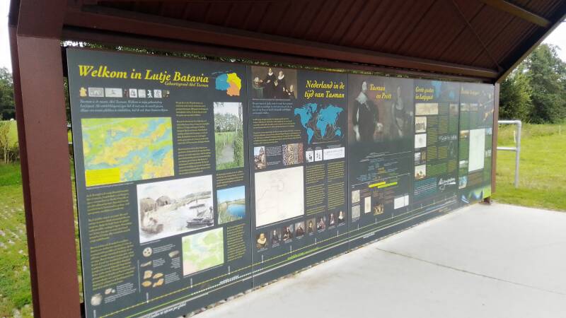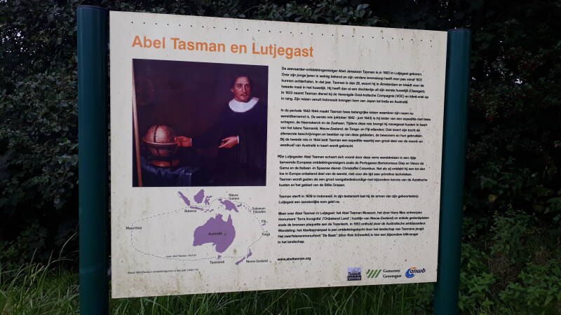 We verlaten Friesland en gaan naar Lutjegast, net over de grens met Groningen. De betekenis van 'lutje' is 'klein'. Een gast is een zanderige verhoging in een overigens moerasachtig drasland. Op het parkeerterrein van dorpshuis ’t Kompas zijn een paar prima gratis camperplaatsen. Lutjegast is de geboorteplaats van de beroemde zeevaarder Abel Tasman die tijdens zijn reis van 1642 tot 1644 Tasmanië, Nieuw-Zeeland en Tongatapu ontdekte. In de Grootegastermolenpolder is het Abel Tasmanpad, een ontdekkingstocht door het landschap van de jeugd van de genoemde ontdekkingsreiziger. Een leuke wandeling langs de Baak, een bijna 7 meter hoog kunstwerk van zwerfkeien, en diverse landerijen met bruggetjes, schapen en informatieborden. Aan het eind komen we bij Lutje Batavia, een openlucht informatie- en educatieplek over Lutjegast, Tasman en zijn reizen, en de omliggende natuur.