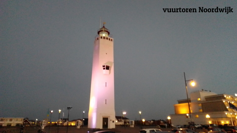 We rijden door naar Noordwijk en komen terecht op camping Op Hoop van Zegen. Een prima plek op ongeveer 10 minuten fietsen van het brede strand en de zee. Er is een mooie boulevard met terrasjes en een vuurtoren. Al in 1444 werden er vuren gestookt ter oriëntatie voor de lokale vissers die na zonsondergang nog op zee waren en huiswaarts moesten keren. De houten stellage van begin 19de eeuw werd in 1854 vervangen door een stenen toren en kreeg in 1922 zijn huidige vorm. Om lekkage te voorkomen werd er een witte pleisterlaag aangebracht.