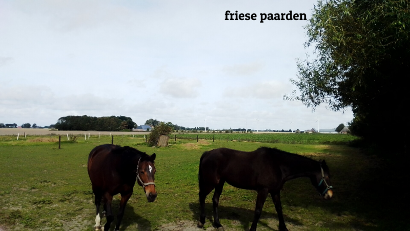 de Elfstedenroute tussen Franeker en Dokkum. Op de fiets gaan we naar Firdgum, een dorp wat rond 1150-1158 is ontstaan op een terp. Van de hervormde kerk staat alleen de 13de eeuwse toren nog met daarin een klok uit 1471. In de voormalige basisschool Yeb Hettinga is nu het gelijknamige museum met een collectie van archeologische lokale vondsten. Naast het museum staat de Jelgersma State, een middeleeuwse stins. Dit is een verdedigbare bewoonbare toren wat steenhuis betekend. Hier is nu een paardenstal gevestigd met Friese paarden, het oudste inheemse paardenras van Nederland. We raken in gesprek met de eigenaar die ons alles vertelt over dit paardenras. In tegenstelling tot wat wij dachten hebben ze geen witte sokken maar moet het paard volledig zwart zijn. Anders worden ze niet geaccepteerd in het stamboek.