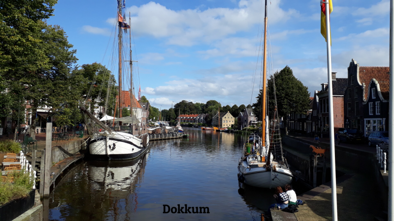 We rijden vanmorgen eerst naar Menaldum waar we bij een oom en tante een Perpetuum Ebner kofferplatenspeler uit 1958 ophalen. Na een bakje koffie gaan we verder naar Dokkum waar we een mooi plekje hebben aan ‘t Dockumer Grootdiep, tot 1729 de verbinding tussen Dokkum en de voormalige Lauwerszee. Dokkum is een eeuwenoude stad en vooral bekend omdat in 754 Bonifatius is vermoord in de omgeving van de stad. Het keerpunt van de Elfstedentocht is er en Fedde Sonnema begon er zijn destilleerderij en likeurstokerij, nog steeds bekend van Sonnema Berenburg. De oude fabriek staat nog altijd in Dokkum. De berenburg wordt inmiddels in Bolsward gestookt.