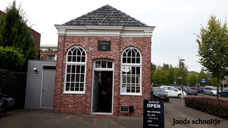 We fietsen door naar het centrum waar de een kijkje nemen in het Joodse Schooltje wat is ingericht als de schoolklas van vóór 1940. In dit schoolgebouwtje kregen de Joodse kinderen van Leek les in de Joodse Religie en de Hebreeuwse taal. In de plaquettes aan de buitenmuur van het museum staan de namen gegraveerd van alle Joodse inwoners van het dorp die in de Tweede Wereldoorlog zijn weggevoerd en vermoord.