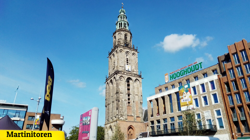 Dag 13 en 14: Het is nog steeds mooi weer als we vanmorgen richting Groningen stad gaan. Aan de rand van de parkeerplaats bij sport- en recreatiecentrum Kardinge zijn 15 gratis camperplekken. Op de fiets is de kortste route naar het centrum 4,5 km. We komen langs de Oostersluis, een grote schutsluis tussen het van Starkenborghkanaal en het Eemskanaal. Als wij aan komen fietsen gaat de brug net open om vervolgens een kwartier open te blijven.