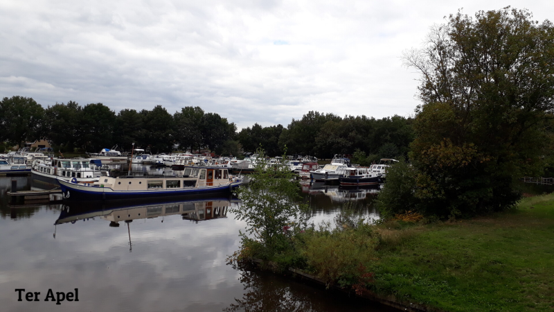 Dag 15 t/m 17: Na twee dagen gratis staan moet nodig het toilet leeg en het water bijgevuld dus gaan we naar jachthaven Ter Apel. Jachthaven de Runde ligt op een knooppunt van vier verschillende vaarroutes, namelijk het Haren-Rütenbrockkanaal, het Ter Apelkanaal, het Ruiten Aa-kanaal en de sinds 2013 bestaande Veenvaart. Het dorp ligt in het uiterste zuidoosten van Groningen en is ontstaan bij het klooster Ter Apel, een middeleeuws kruisherenklooster uit 1465 en het enige nog bestaande plattelandsklooster van Noordwest-Europa. Het conventgebouw is in gebruik als museum voor klooster- en kerkgeschiedenis en religieuze kunst. In een groot materiaaldepot van het Amerikaanse leger in West-Duitsland werd na de sluiting in 1995 het asielzoekerscentrum ondergebracht.